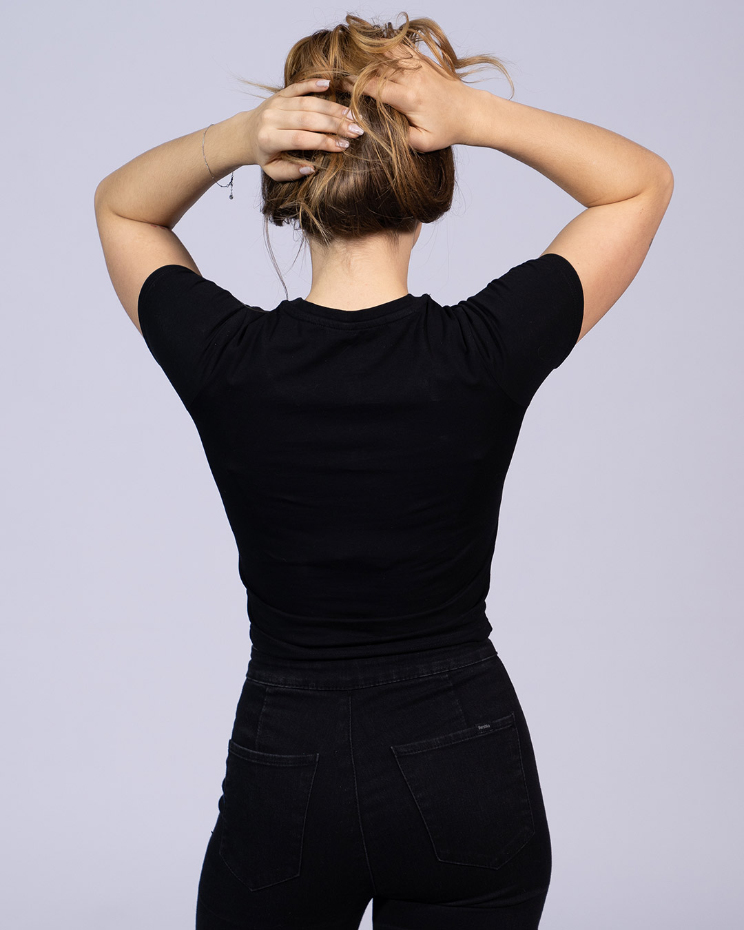 Sehr bequemes, kurz geschnittenes Clubkatzen / Geile Teile „cropped“ Damen T-Shirt oder Crop Top.