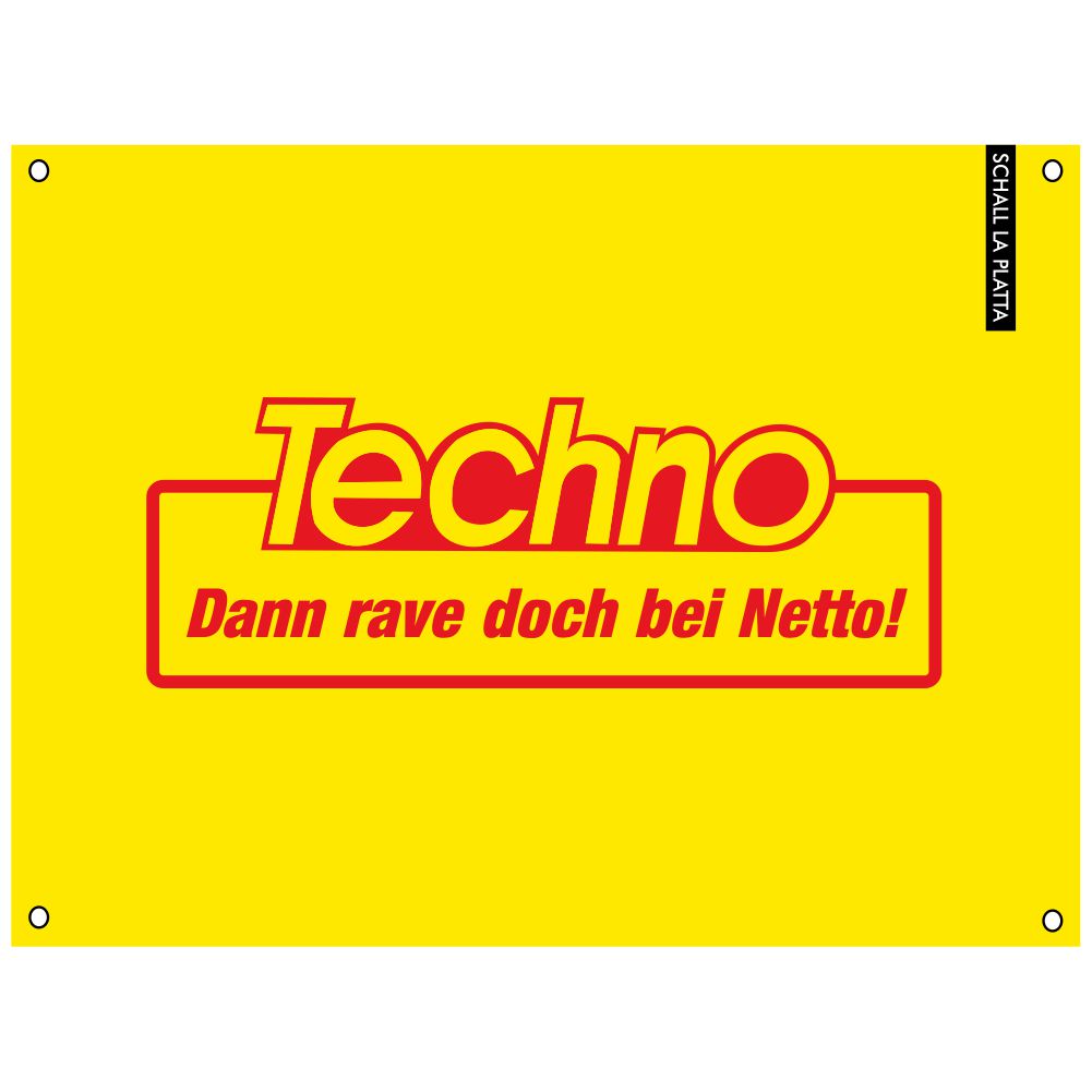 Bierfahne oder Schnapsfahne am Start? Dann fehlt nur noch die Techno-Fahne... aufhängen oder direkt vorm Netto däncen. Bitte schick Video!